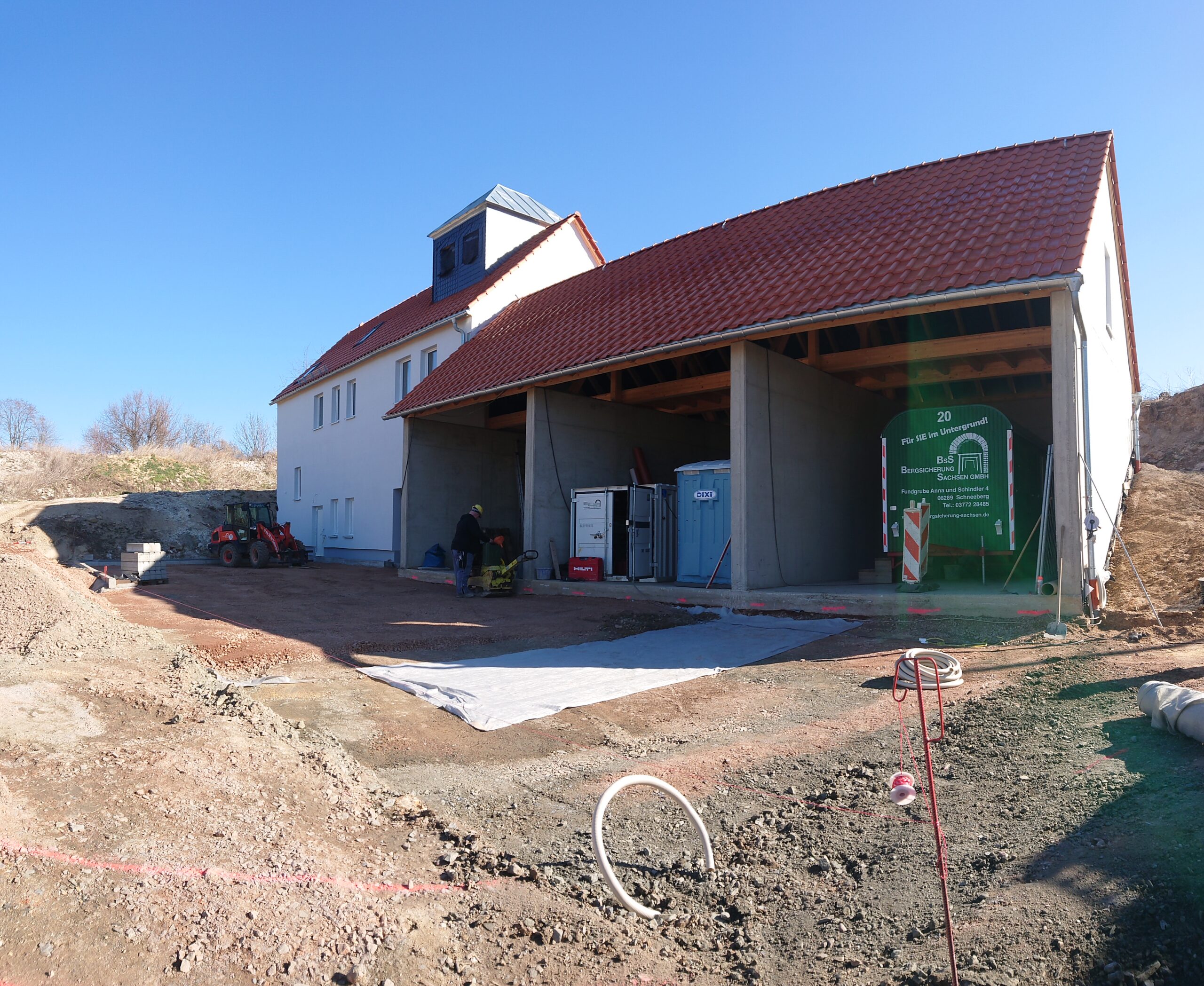 Die Bergsicherung Sachsen GmbH wurde mit der Errichtung der kompletten Tagesanlagen, dem sogenannten „Huthaus“, beauftragt. Während bergmännische Arbeiten bei diesem speziellen Projekt nicht zu unserem Auftragsvolumen zählten, lag der Fokus auf der fachgerechten Erstellung der Hochbauten.